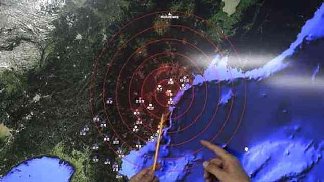 Ko Yun-hwa, do serviço meteorológico da Coreia do Sul, aponta no mapa para local onde foram registradas ondas sísmicas após Coreia do Norte ter dito que realizou teste com uma bomba de hidrogênio