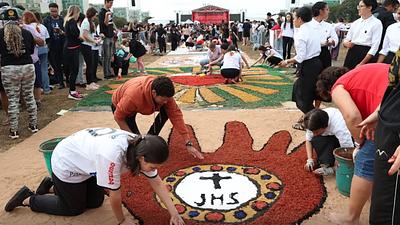 Os contornos, no final da manhã desta quinta-feira, ganharam a forma de tapete para a celebração de Corpus Christi.