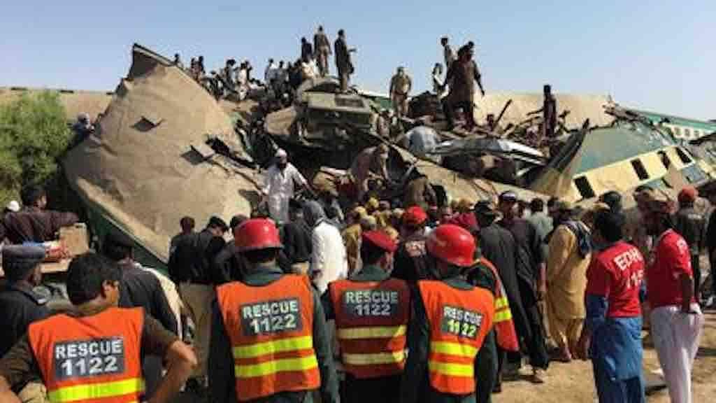 O número de mortos provavelmente aumentará, já que agentes de resgate estavam com dificuldade para alcançar pessoas aprisionadas em vários compartimentos esmagados e espalhados pelos trilhos em Sindh, província do sul do país.