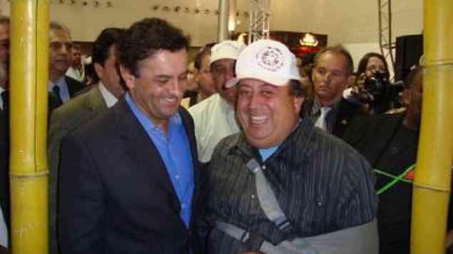 Aécio Neves, então governador, ao lado do primo e suposto sócio, Quedo
