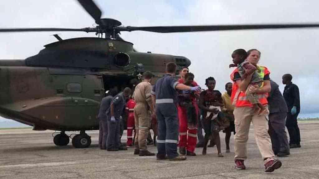 Helicópteros estavam transportando pessoas, algumas retiradas dos tetos de casas e de topos de árvores, para a cidade portuária de Beira, o principal quartel-general da enorme operação de resgate.
