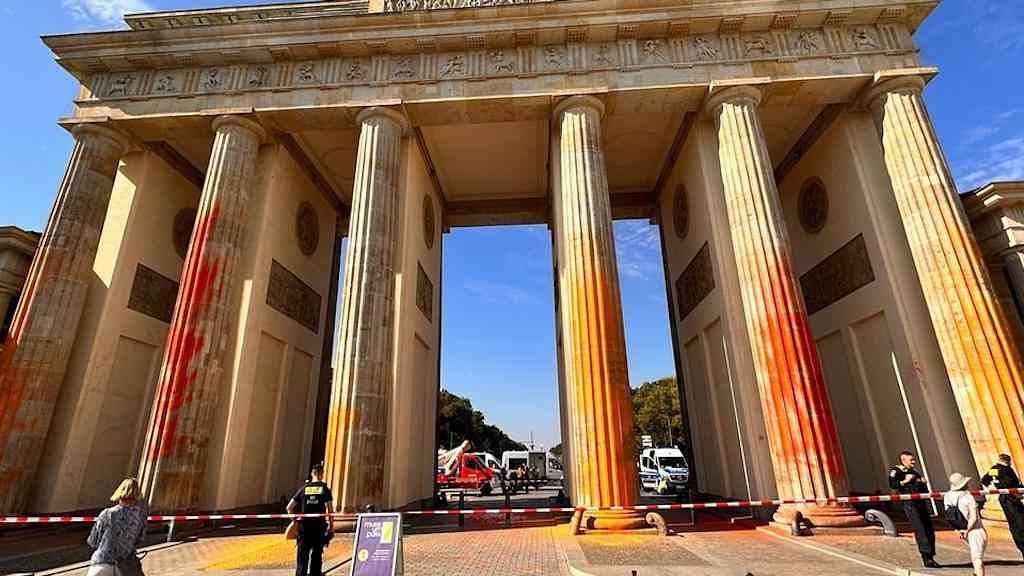 Ativistas ambientais borrifaram neste domingo tinta laranja e amarela nas colunas do Portão de Brandemburgo, um dos principais monumentos de Berlim. Ao menos 14 pessoas foram detidas pela polícia alemã, por suspeita de danos ao patrimônio.