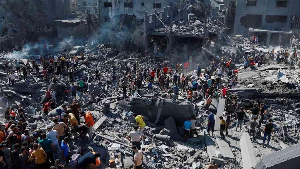 Há três semanas, o enclave (termo da geografia, que se refere a um território totalmente cercado por outro, com características políticas, sociais e culturais distintas) palestino sitiado é alvo de bombardeio israelense, desencadeado por uma onda de assassinatos em massa no Sul de Israel perpetrado por militantes do Hamas que comandam Gaza, com apoio do Irã.