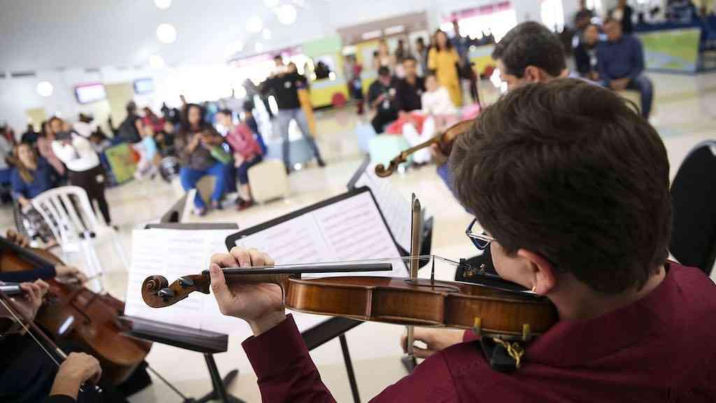 A Orquestra Sinfônica do Teatro Nacional se apresenta no Hospital da Criança de Brasília como parte do projeto Concertos da Saúde