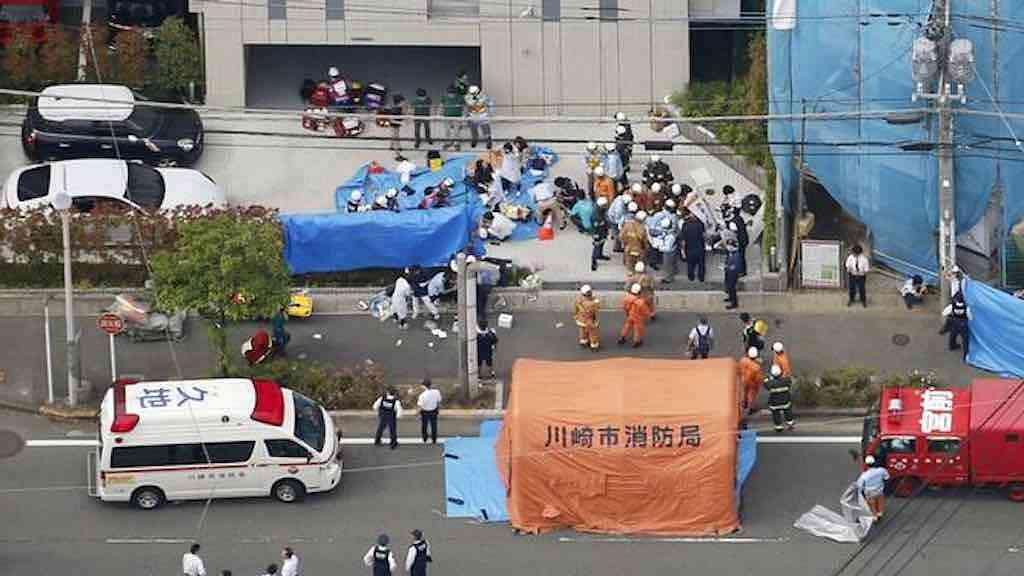 Homem investe contra estudantes de idades entre 6 e 12 anos, matando uma delas e um adulto em Kawasaki, próximo a Tóquio. Agressor deixou vários feridos antes de morrer no local.