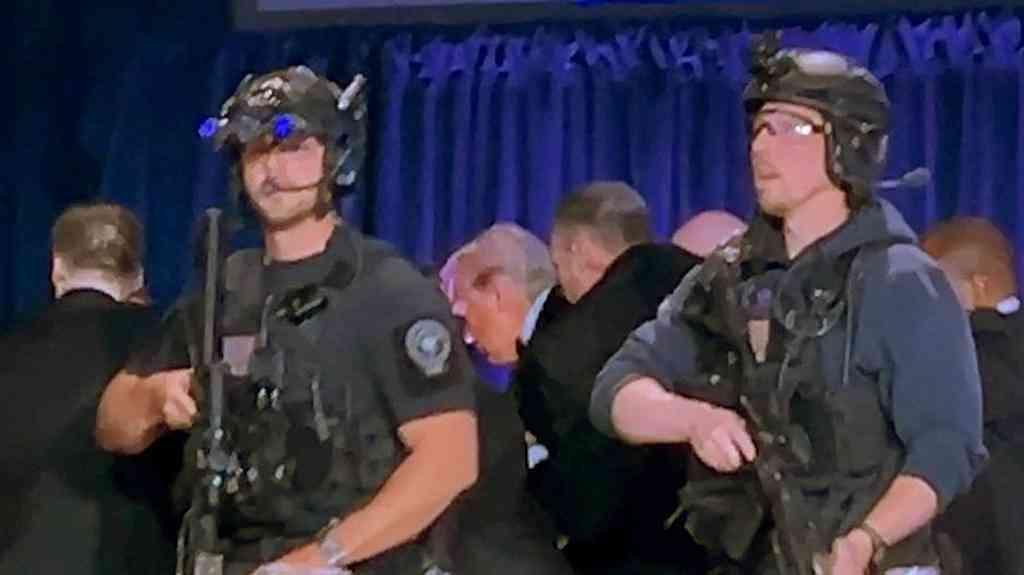 Trump permaneceu nos bastidores por cerca de uma hora após ser retirado às pressas do palco, disse uma fonte à agência inglesa de notícias Reuters.