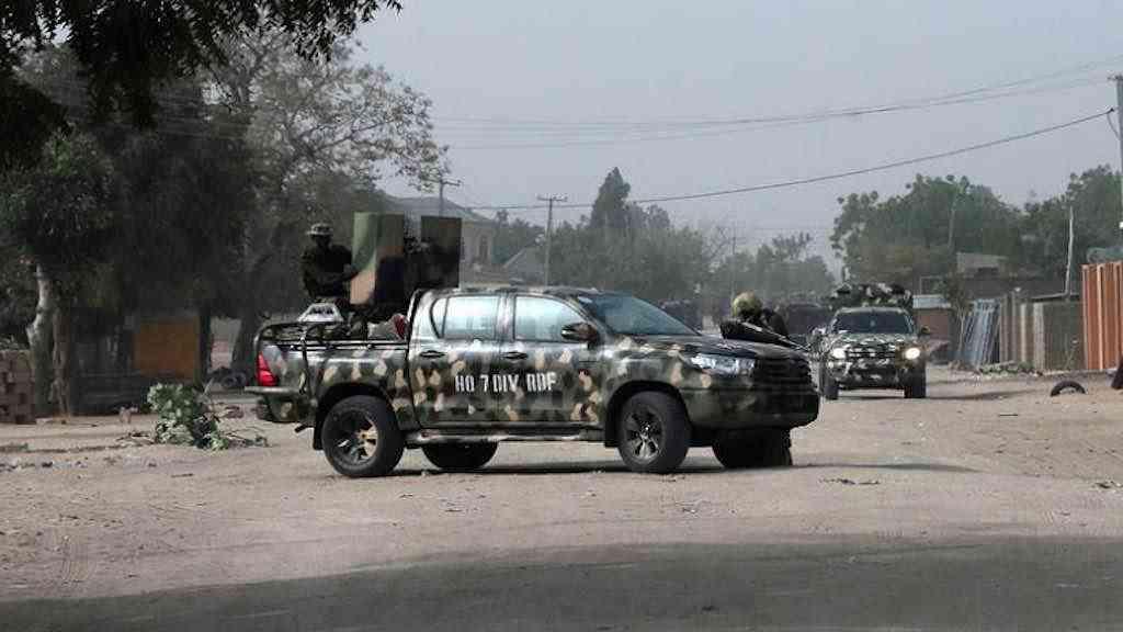 Forças de segurança da Nigéria em local de ataque em Maiduguri