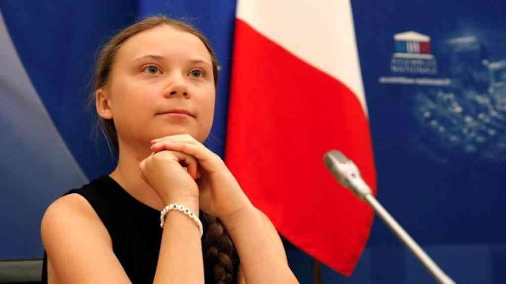 A ativista sueca Greta Thunberg durante debate na Assembleia Nacional, em Paris, na França