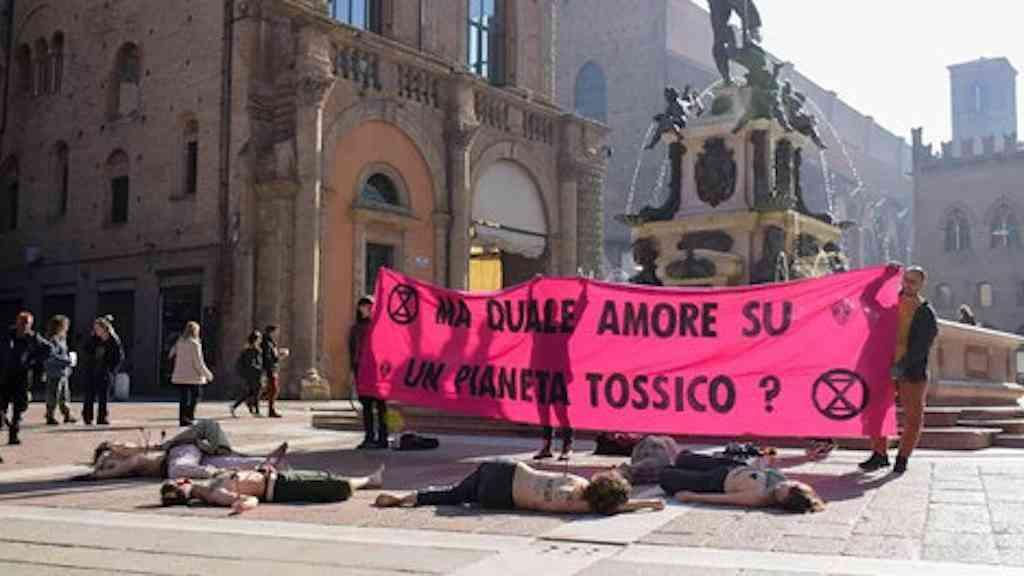 Em um protesto em Bolonha, na Itália, as ativistas do grupo Extinction Rebellion se despiram em frente à fonte de Netuno, localizada nas proximidades da Piazza Maggiore, um dos principais pontos da cidade emiliana.