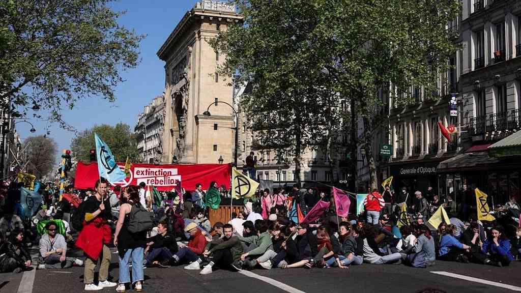 Ativistas contra mudanças climáticas bloqueiam praça central de Paris