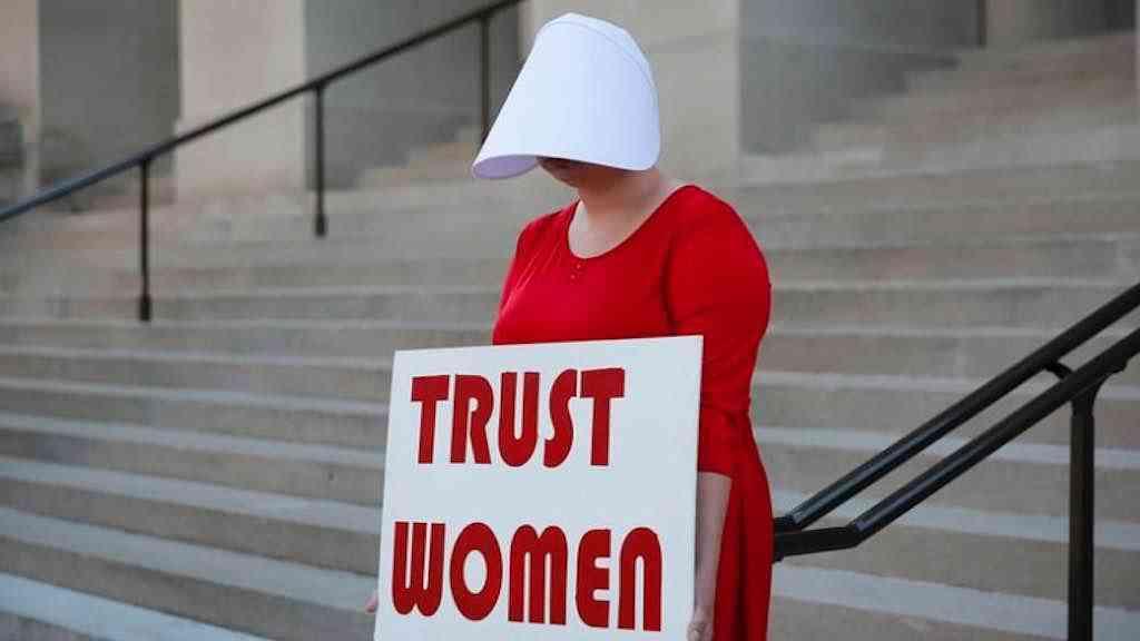 Mulher protesta contra legislação estadual da Geórgia que restringe o direito ao aborto, em Atlanta