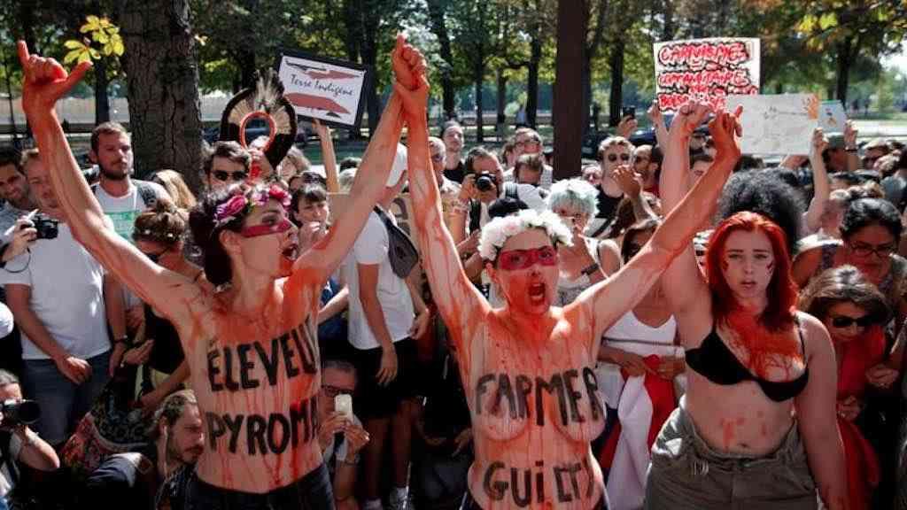 Milhares de ativistas protestaram do lado de fora da embaixada do Brasil na França nesta sexta-feira, no momento que se intensificam as divergências entre os líderes dos dois países na área ambiental, e manifestações semelhantes ocorreram em Londres.