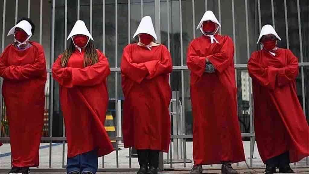 O protesto foi inspirado no livro O Conto da Aia, em que as personagens existem exclusivamente para procriar e não possuem direito de escolha sobre seus corpos.