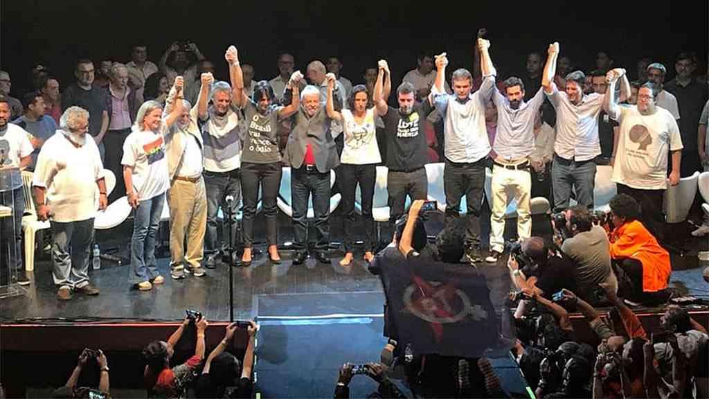Líderes partidários da esquerda brasileira e de movimentos sociais reuniram-se, na noite desta segunda-feira em um ato suprapartidário no Circo Voador, Lapa, Centro da Cidade. Os oradores protestaram também contra o assassinato político de Marielle Franco. Nos Arcos da Lapa, do lado de fora do teatro, milhares de pessoas se reuniram para acompanhar o ato público.