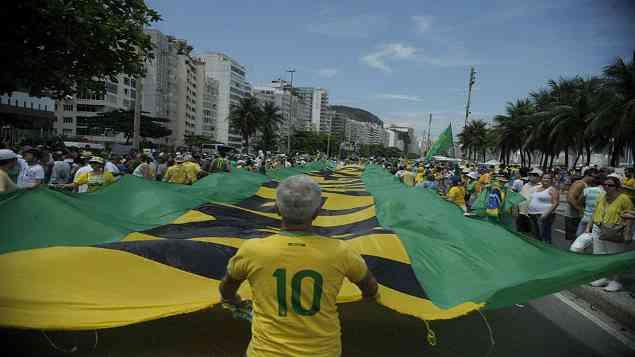 Manifestantes que participam neste domingo, na Praia de Copacabana, defenderam o processo de impeachment da presidenta Dilma Rousseff e a convocação de novas eleições. Embora o alvo principal dos ativistas seja o afastamento da presidenta da República, é grande o número de pessoas que defendem a saída do vice-presidente Michel Temer e do presidente da Câmara dos Deputados, Eduardo Cunha (PMDB-RJ).