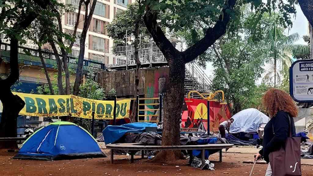 Barracas abrigam dezenas de famílias na Praça Marechal Deodoro, na região central de São Paulo