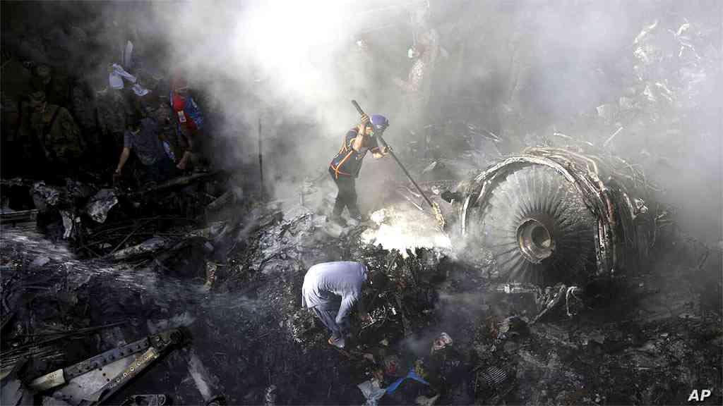 O voo PK 8303 da Pakistan International Airlines, um Airbus A320, estava voando de Lahore para Karachi com 99 pessoas a bordo quando caiu enquanto tentava uma segunda tentativa de pouso.