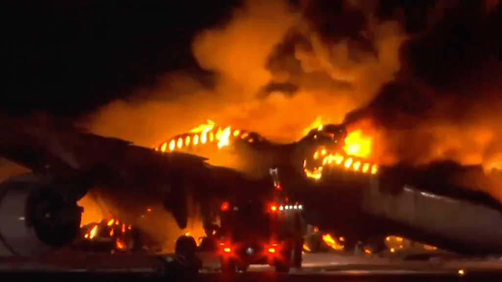 Cinco das seis pessoas que estavam no avião da Guarda Costeira morreram na colisão. Os 379 passageiros e tripulantes do Airbus A350 da Japan Airlines conseguiram deixar a aeronave em segurança antes que fosse tomada pelas chamas.