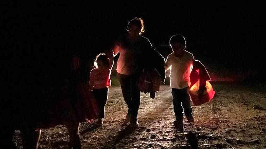 Mulher de Honduras com dois filhos é acompanhada por agente de fronteira dos EUA