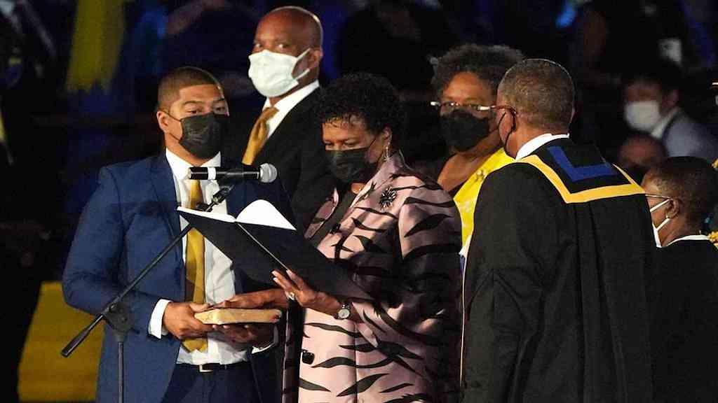 Como símbolo da mudança de regime, o estandarte real do Reino Unido foi retirado e a governadora-geral Sandra Mason prestou juramento como primeira presidente da nação do Caribe.