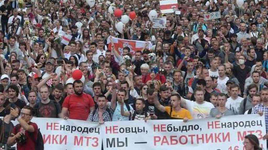 Pelo segundo domingo seguido, milhares de manifestantes voltaram às ruas de Minsk, capital de Belarus, neste domingo, para realizar um novo protesto contra a reeleição do presidente Alexander Lukashenko.
