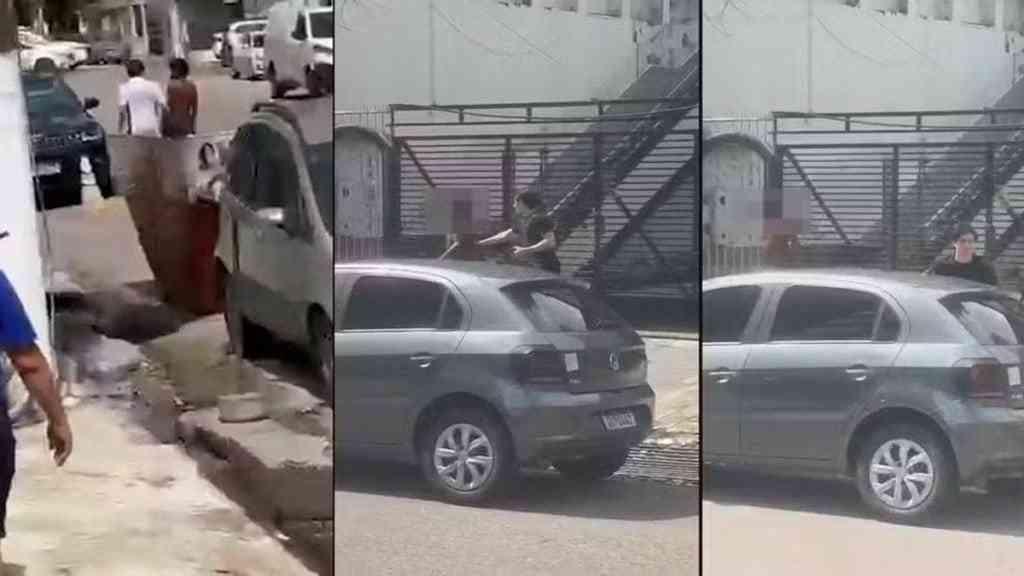 Vídeos que circularam nas redes sociais mostram o homem caminhando de costas, próximo da universidade, quando um dos estudantes se aproxima e aplica as descargas elétricas em pelo menos dois momentos.