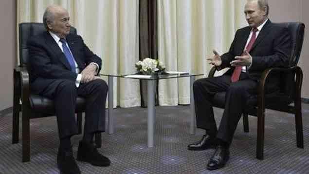 Presidente da Rússia, Vladimir Putin (D), e o presidente da Fifa, Joseph Blatter (E), em encontro realizado em abril, em Sochil