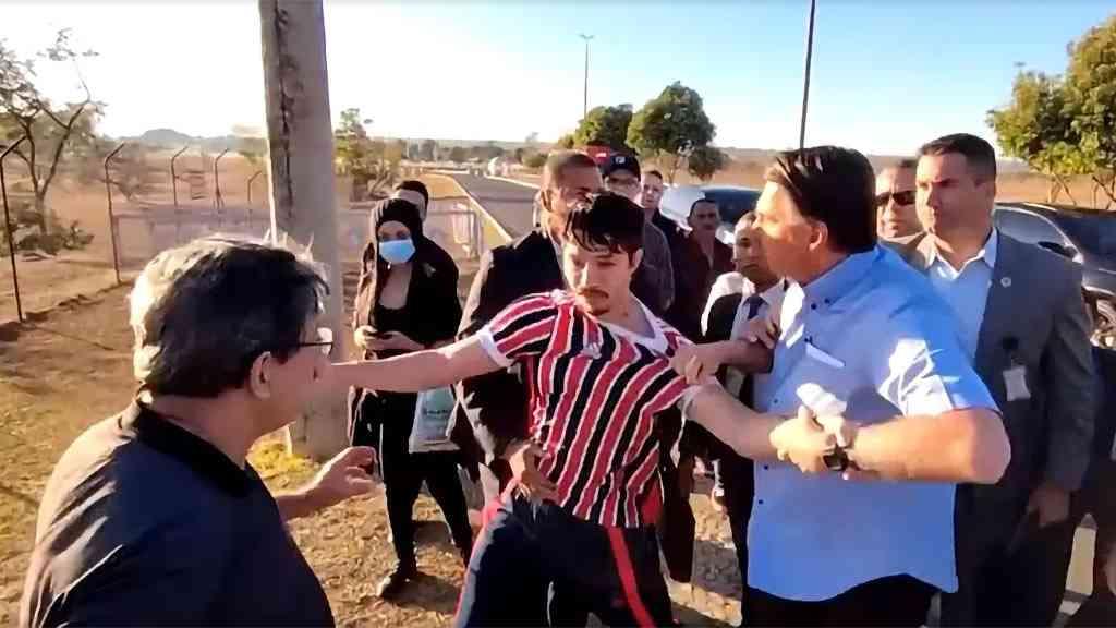 Bolsonaro entrou no carro oficial para seguir para sua agenda de campanha eleitoral, mas, com a aumento dos xingamentos, saiu do veículo e foi em direção ao ‘youtuber’. O presidente disse que queria falar com ele e na tentativa de pegar o celular dele, acabou puxando o homem pela gola da camiseta, depois o agarrou pelo braço.