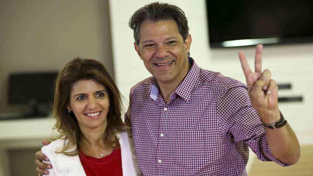 O candidato à presidente Fernando Haddad (PT), ao lado da mulher, confia na vitória