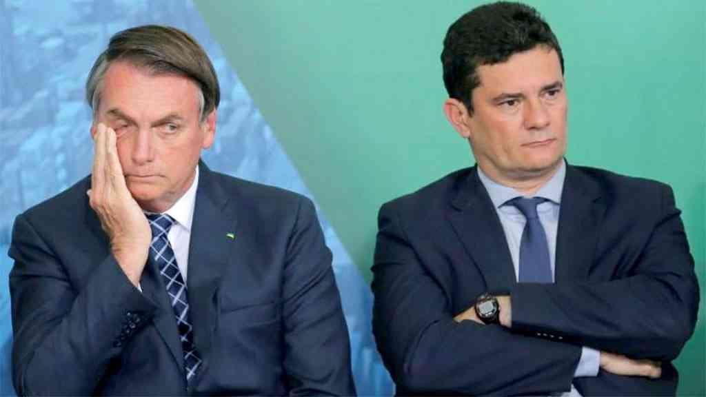 Bolsonaro e Moro, cada vez mais distantes, após pesquisas eleitorais os colocarem na posição de futuros adversários, nas urnas, em 2022