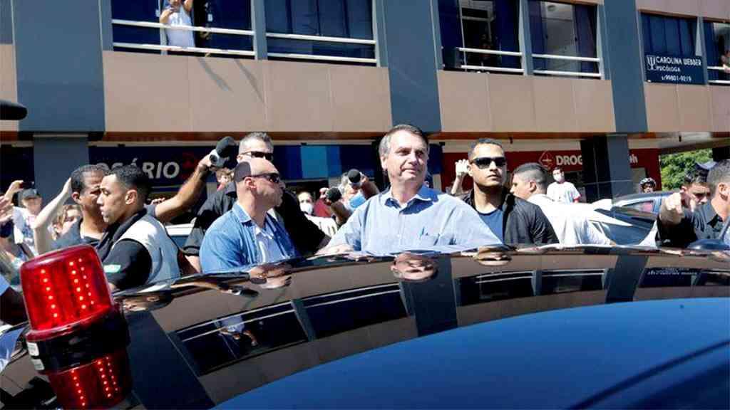 Bolsonaro, no meio de uma aglomeração, cumprimenta os seguidores com a mão suja de secreção do nariz