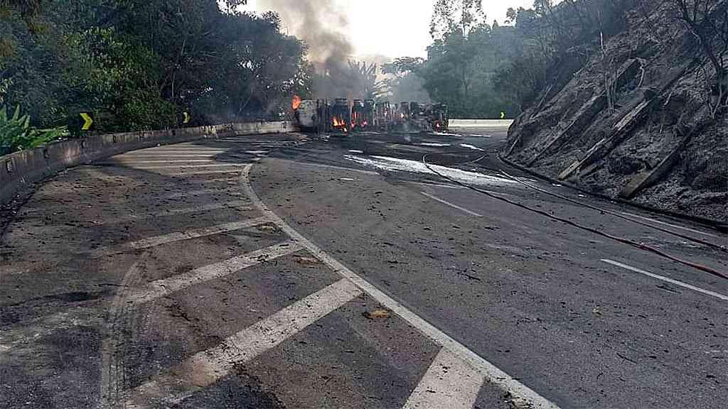 Um incêndio em um caminhão carregado de combustível, que tombou na altura do quilômetro 96 da BR-040, em Duque de Caxias, na pista em direção a Petrópolis, na Região Serrana do Estado do Rio de Janeiro, interrompeu o trânsito na rodovia durante toda a manhã desta quinta-feira. De acordo com a Polícia Rodoviária Federal (PRF), o motorista do caminhão morreu no local.