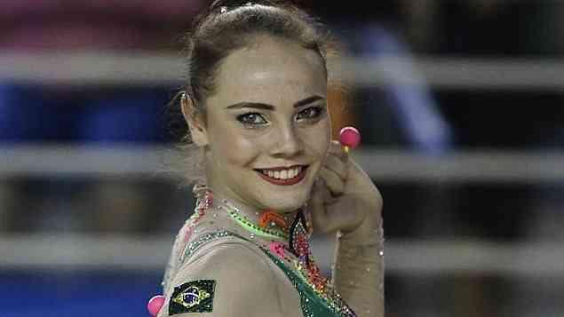 Angélica Kvieczynski, que ficou com a terceira colocação na final da fita, na ginástica rítmica
