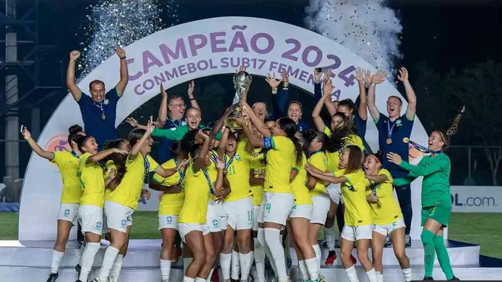 Após uma campanha invicta, a seleção brasileira feminina de futebol Sub 17 conquistou o pentacampeonato sul-americano, com com direito à goleada; Na noite de domingo, as brasileiras derrotaram as anfitriãs paraguaias. por 5 a 1, no Estádio Carfem, em Ypané. Além de levantar a taça pela quinta vez na história, a seleção também carimbou vaga na Copa do Mundo da categoria, programada para outubro, na República Dominicana.