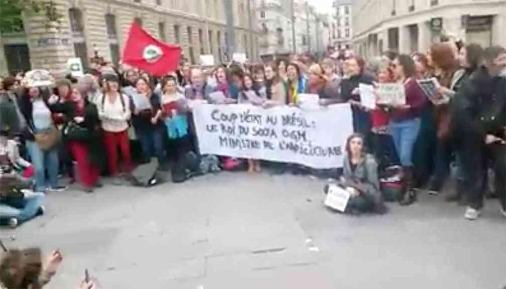 Participaram da ação o Coletivo Solidariedade França Brasil, é formado por amigos do MST na França, o Mouvement contre le Racisme et pour l'Amitié entre les Peuples (Movimento contra o Racismo e pela Amizade entre os Povos - MRAP), o Autres Brésils, o Movimento democrático 18 de março (MD18), o France Amérique Latine (FAL), o nucleo do PT Paris e o Partido Comunista Francês (PCF). Estes movimentos representam uma frente ampla contra o golpe de Estado, em apoio às manifestações da Frente Brasil Popular.