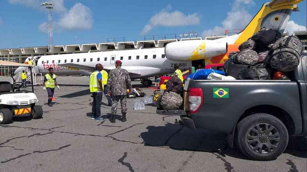 Homens da Força Nacional de Segurança Pública embarcam para a cidade de Pemba, em Moçambique, atingida pelo ciclone Kenneth