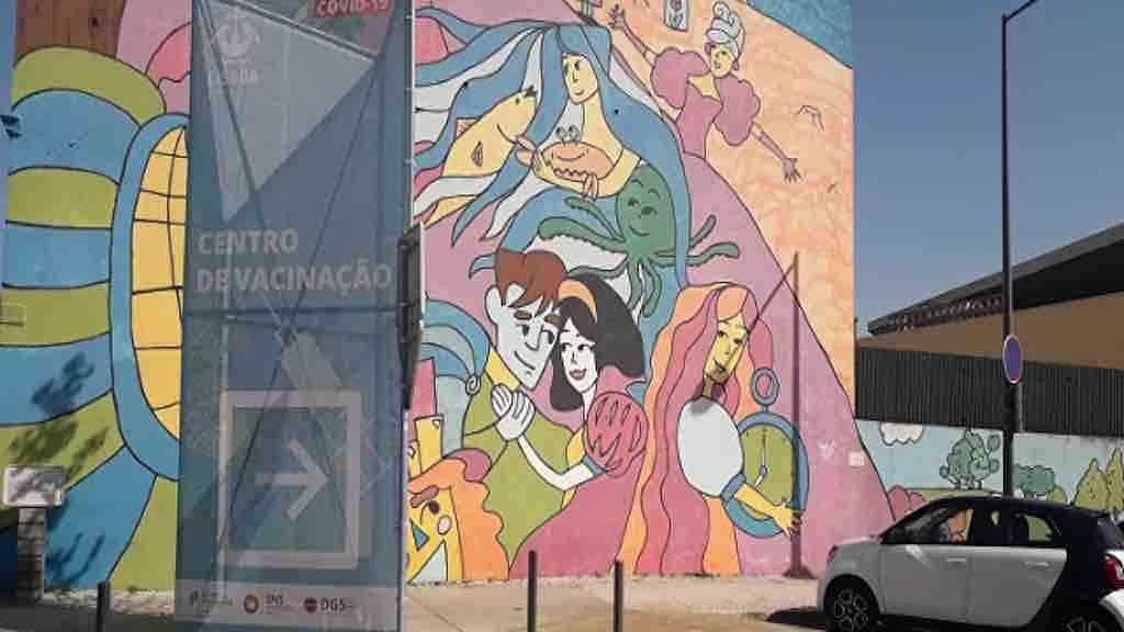 Placa indica centro de vacinação contra covid-19 em Lisboa