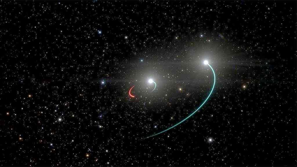 Na representação gráfica de um buraco negro, a rotação de estrelas é tão intensa que altera o espaço-tempo