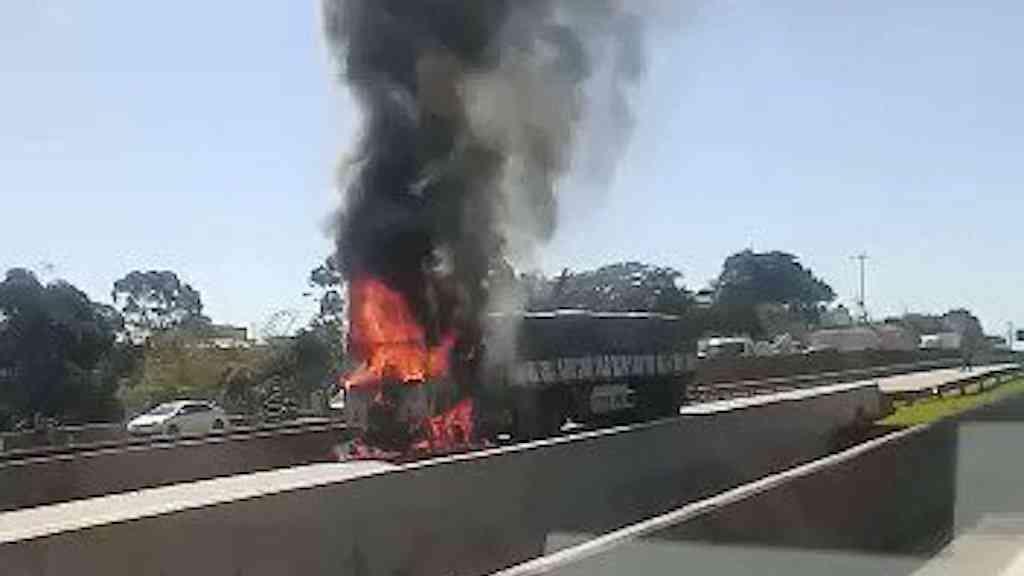 Caminhão de carga pega fogo e provoca congestionamento na Presidente Dutra