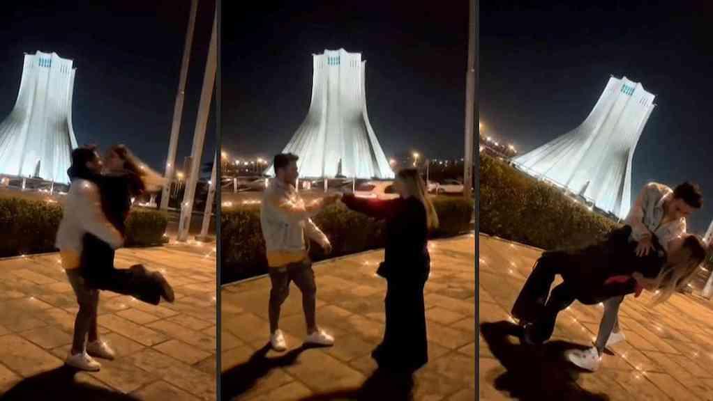Astiyazh Haghighi, de 21 anos, e seu noivo Amir Mohammad Ahmadi, de 22 anos, foram presos em novembro após o vídeo de danças românticas em frente à torre Azadi ("liberdade", em persa), na capital do Irã, viralizar.