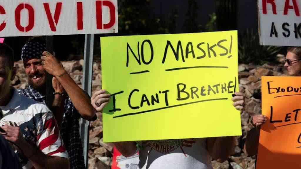 Manifestantes protestam contra o uso de máscaras em Tucson, Arizona