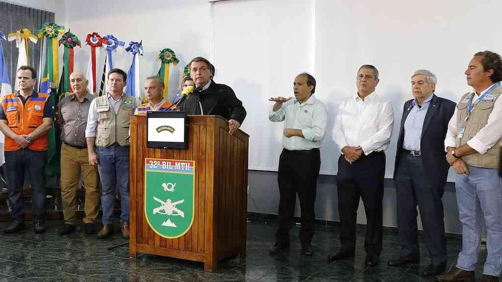 O presidente concedeu uma entrevista coletiva acompanhado de ministros e autoridades estaduais e municipais. Bolsonaro disse que medidas preventivas a desastres estão previstas no Orçamento, mas, no caso de emergências, as ações são diferentes, e o governo fará sua parte.