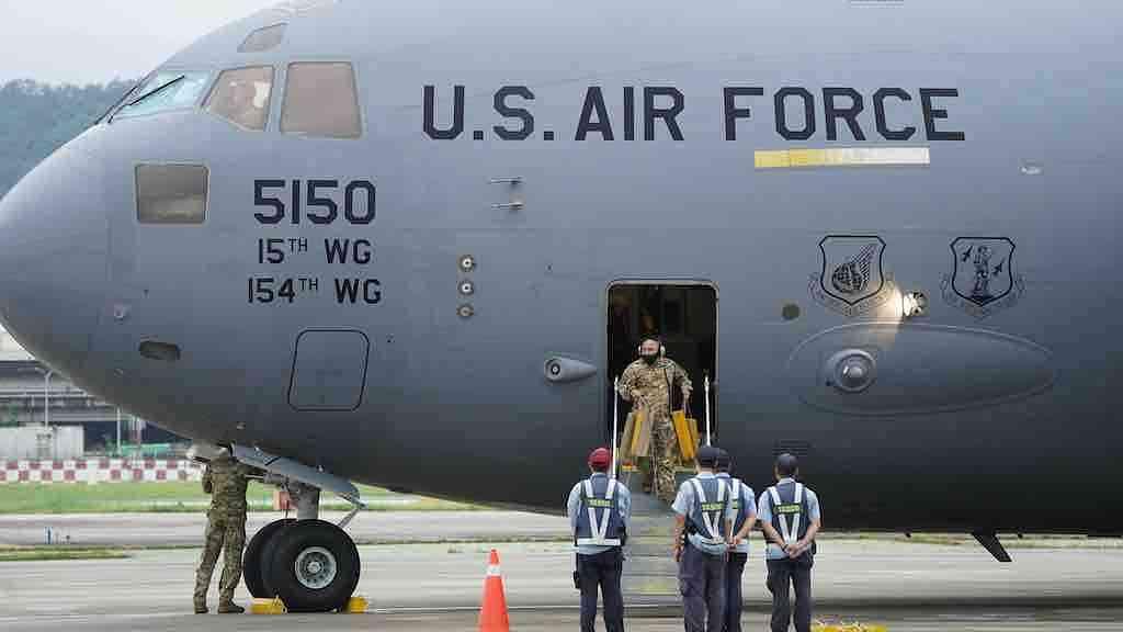 A presença de um avião de transporte militar dos EUA capaz de transportar tropas e carga, incluindo artilharia, tanques e helicópteros, na ilha de Taiwan pode desencadear uma resposta vigorosa de Pequim.
