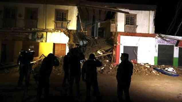População Construção danificada por terremoto na cidade de Illapel, no centro do Chile Policial atravessa barricada para chegar a local onde mulher morreu devido a terremoto em Illapel, no centro do Chile