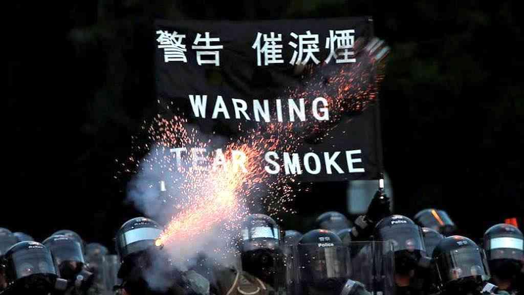 Polícia dispara bombas de gás lacrimogêneo contra manifestantes em Hong Kong