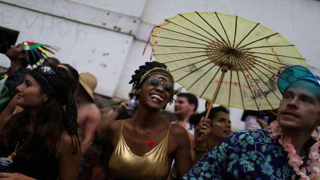 A chuva que ainda atinge o Rio de Janeiro não atrapalha o carnaval de rua nos diversos bairros da cidade