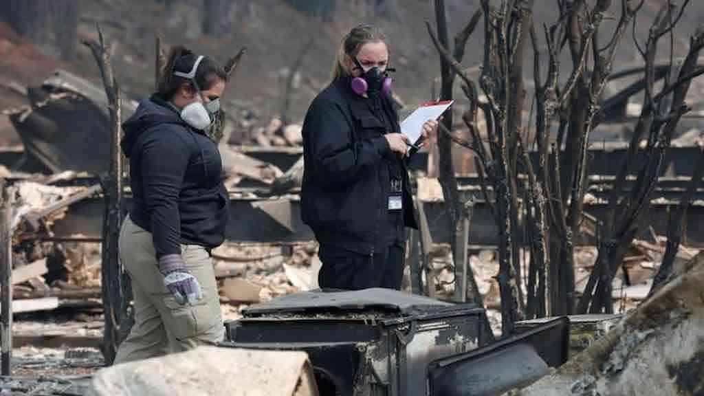 Patologistas da Universidade de Nevada, em Reno, trabalharam durante o fim de semana enquanto os bombeiros retiravam detritos, coletando pedaços de ossos queimados e fotografando tudo que pudesse ajudar a identificar as vítimas.