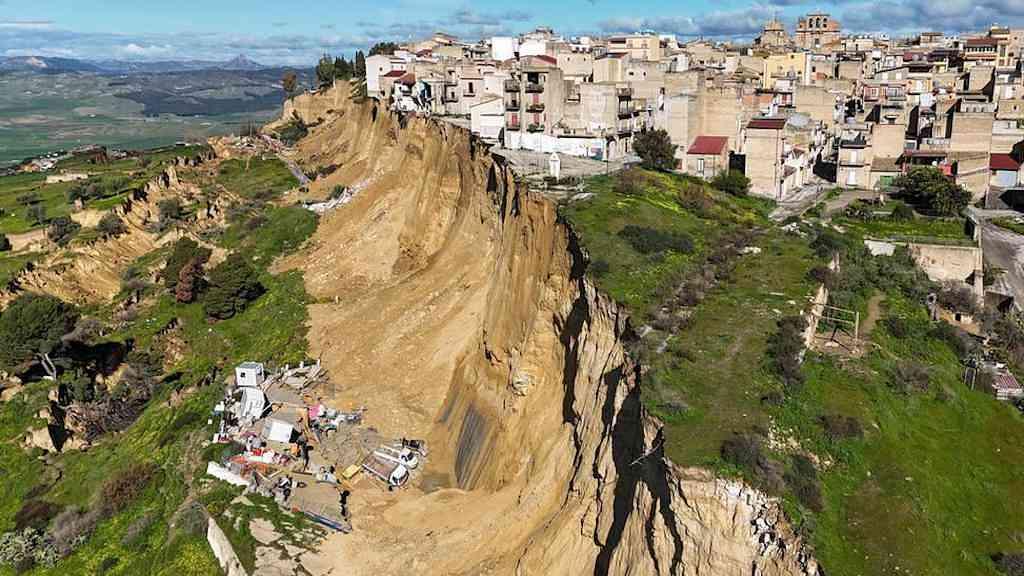 As imagens impressionantes de prédios pendurados precariamente à beira de um precipício em Niscemi circularam por toda a Itália após o desabamento de uma grande área de terra devido aos vários dias de chuvas intensas.