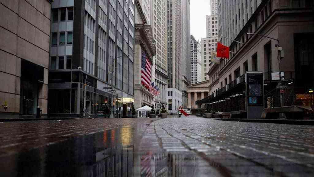 Prédio da Bolsa de Nova York em uma rua Broad quase deserta