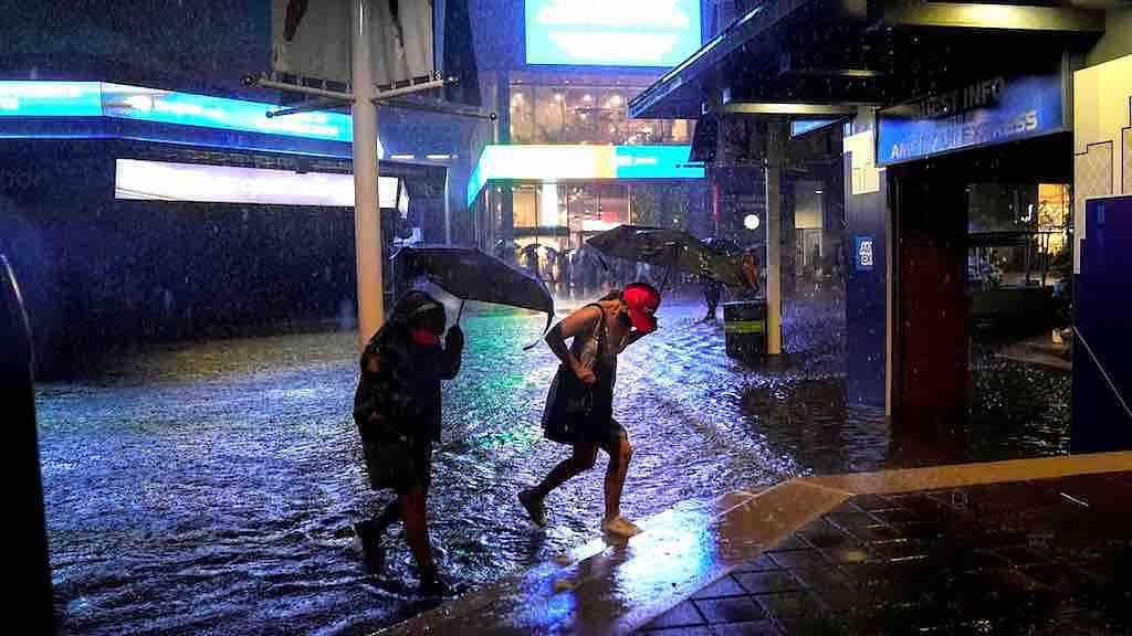 O Serviço Nacional do Clima emitiu um alerta de emergência de inundação relâmpago para a região, e partes da praça do Centro Nacional de Tênis Billie Jean King ficaram inundadas.